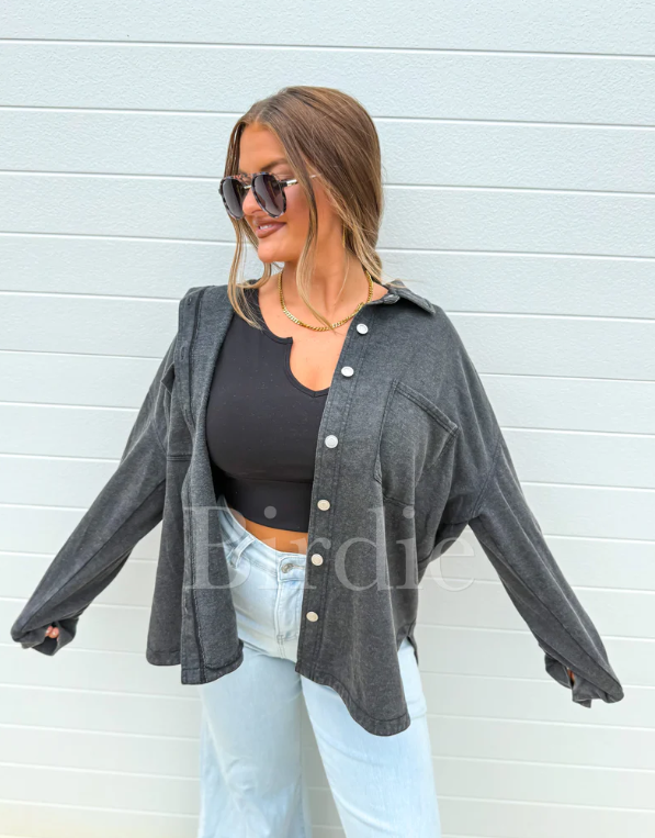 Looks like denim but feels like your favorite sweats!! Get the best of both worlds with our French Terry Shacket—designed to give you that effortlessly cool denim look, but with the softness and comfort of lived-in loungewear. Made from a breathable 60% cotton, 40% polyester blend, it’s fully lined with cozy French terry and fits true to size for easy layering. The button-up front adds a classic touch, while the relaxed structure keeps it casual. It's your throw-on-and-go essential for transitional weather, weekend wear, and everything in between.