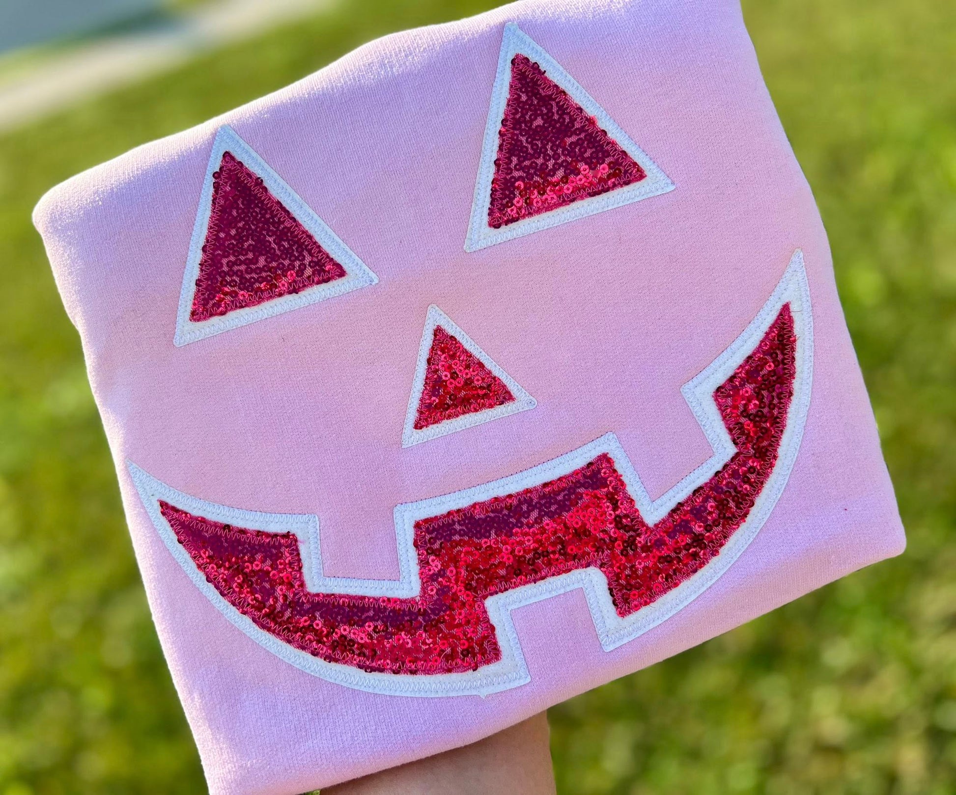- Pink/Pink/Pink - pink crewneck pullover, white glitter and pink sequins