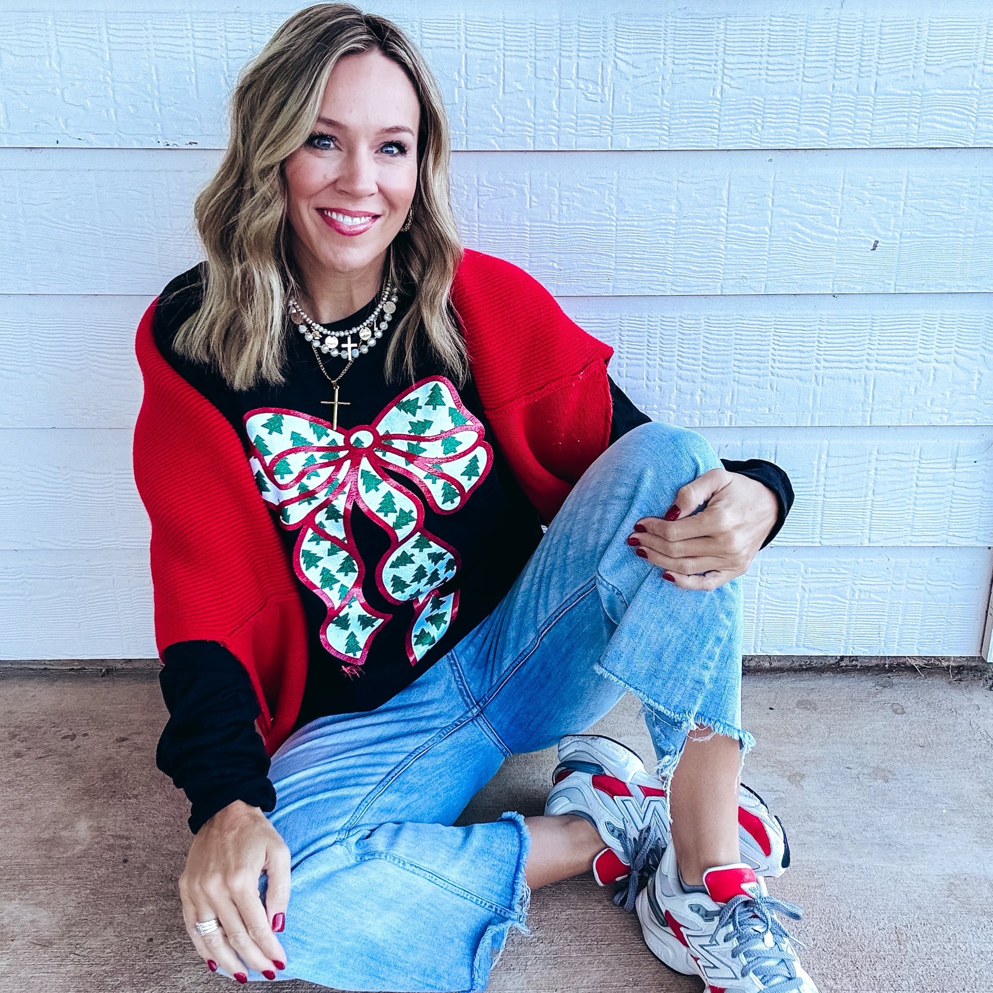 Glitter Bow with Tiny Trees - Short and Long Sleeve Option